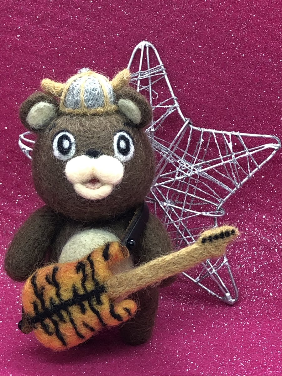 3 28 メタル熊野ミッキ〜🐻🎸 作りましたよん✌️ #ベイビーベイビーベイビーズ #熊野ミッキー #羊毛フェルト #ニードルフェルト 21/10/30 07:35