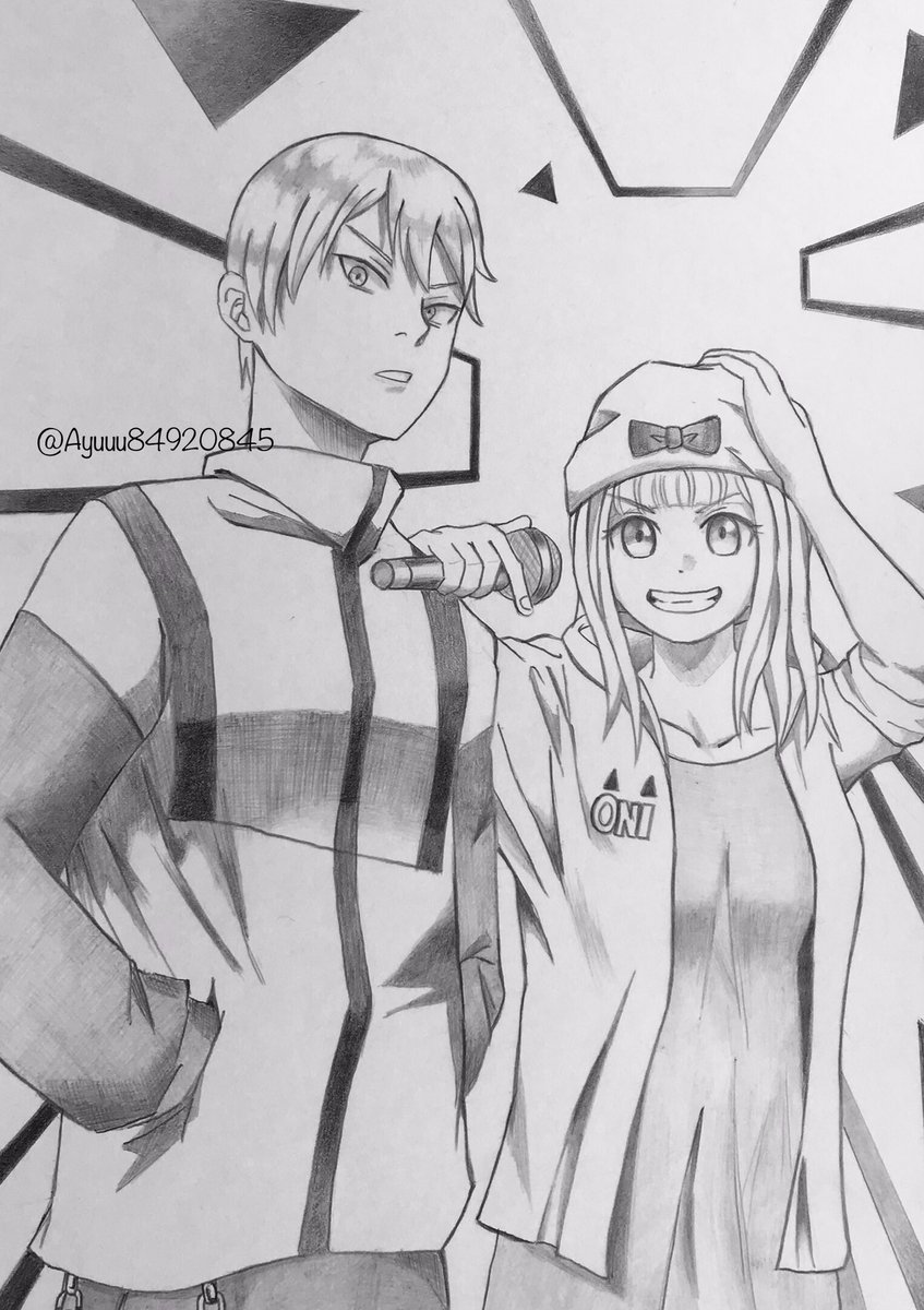白銀と千花ちゃん🎤🤩を鉛筆で描きました。カッコかわいいを目指した二次創作です! いいねはもちろん、拡散、リプたくさんいただけると嬉しいYo‼︎ #かぐや様アート_日常部門 #かぐや様は告らせたい #白銀御行 #藤原千花