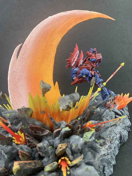 題名「鬼の一撃」 提出完了(*⁰▿⁰*)ヒュー オーガ刃-Xの振り下ろした薙刀による力強い破壊表現を形にしました👹 色んな角度から見てもらえたら嬉しいです!! #エディオン広島本店2周年コンテスト