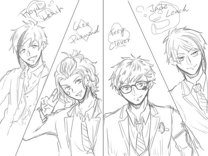 これは描かねばって思って勢いで描いてしまった #ツイステファンアート #ローディング画面に出た4人を描く