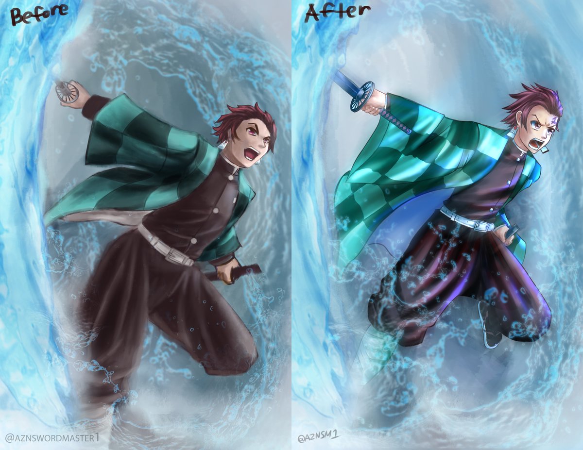I decided to fix up an old art. I did like the water effects I had on my old one so I kept most of it. #DemonSlayer #DemonSlayertheMovieMugenTrain #demonslayerfanart #kimetsunoyaiba #kimetsunoyaibafanart #tanjiro #anime