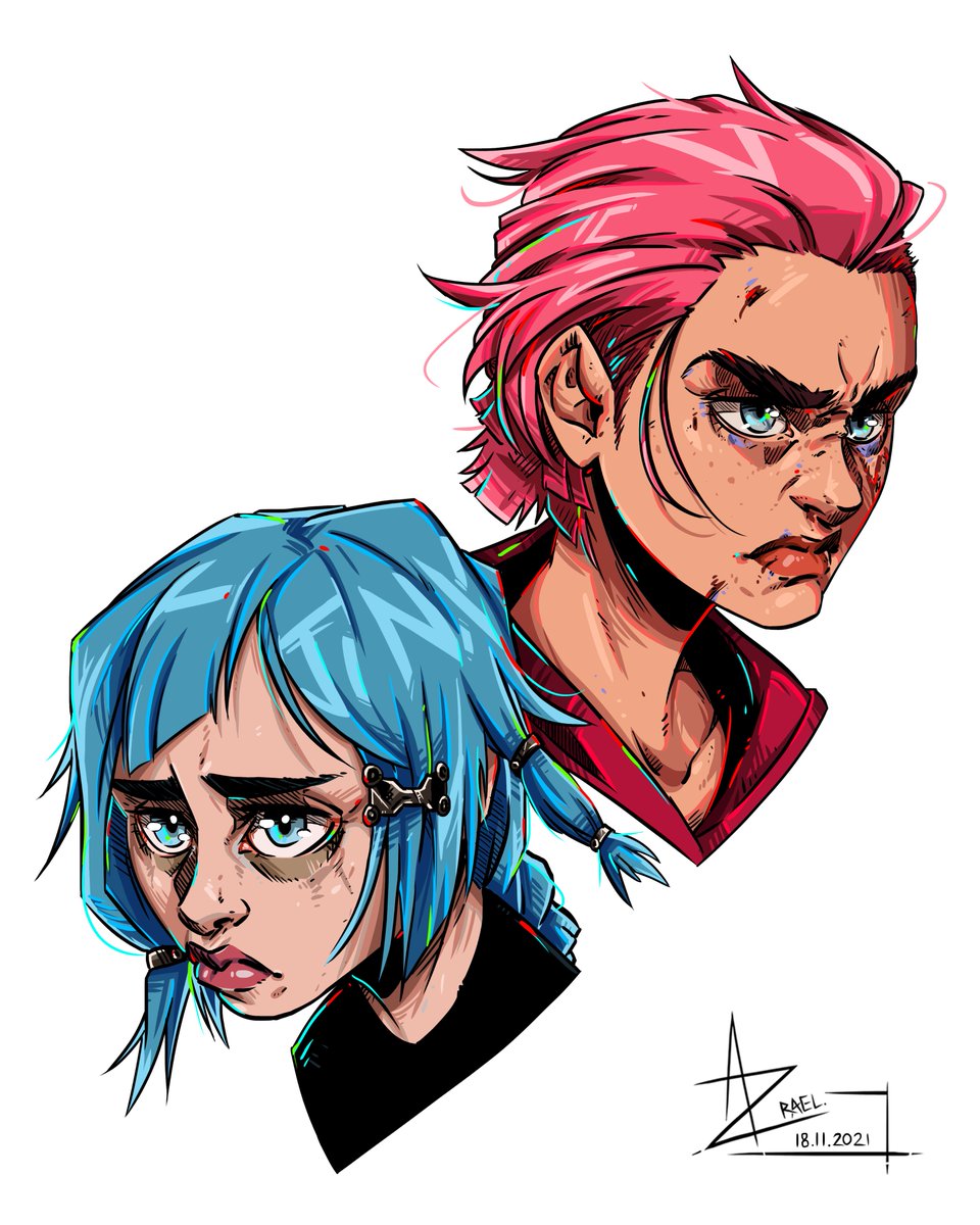 #ArtAdventCalendar Day 8 I was quite proud of these Arcane portraits. I hope to have the time to do fan art again. #ArtistOnTwitter #vi #Jinx #arcane #LeagueOfLegendsFanArt