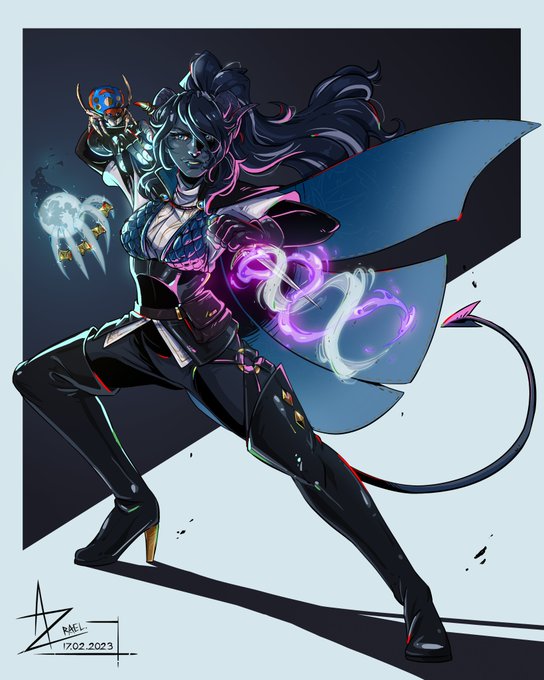 Kerberos🌒🗡️, Moon themed Arcane Trickster Tiefling and her peacock spider familiar Prism Commission done for @Ober0n_Prime original character design by @baydews #dnd5e #dungeonsanddragons #dndart #DnDcharacter #pathfinder #TTRPGs #humanartist