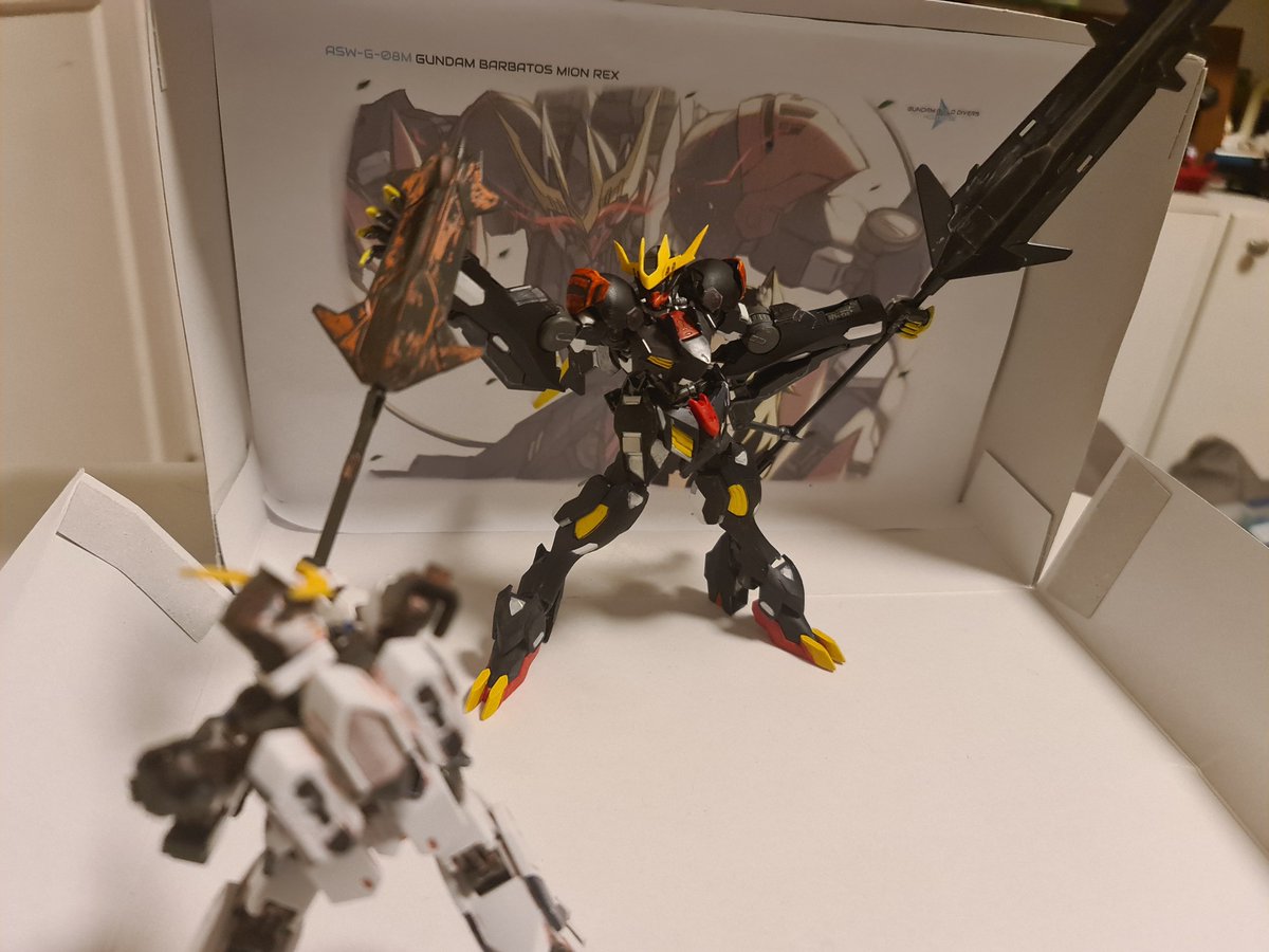 IT'S DONE! Inspired directly from @PinguinKotak's Barbatos Mion Rex, (whose art is the bg) I have built my own rendition of it as an actual kit! So thanks to Kotak for inspiration, it was a blast making this from start to finish! (A bio and more pics in the replies) #みおーん絵