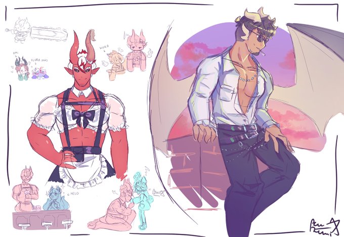 in response to some tweets I saw by my friends, I decided to do this bunch of doodles with help of ideas of some more folks~ Everyone will be credited below, along with the inspiration tweets :3 #Vtuber #art #digitalart #ENVtubers