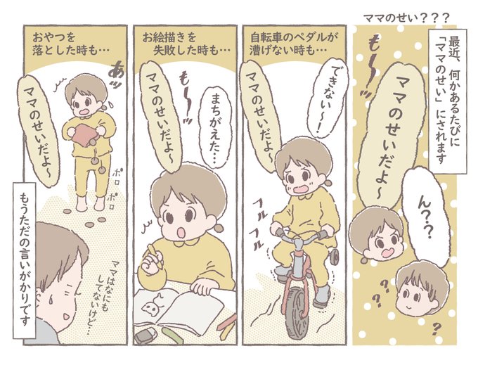 1 39 なんでもかんでもママのせい…だそうです😭 ウチだけでしょうか…💦 #4歳児 #育児絵日記 #育児漫画 #エッセイ漫画 #子育てあるある #子育て漫画 22/11/14 07:30