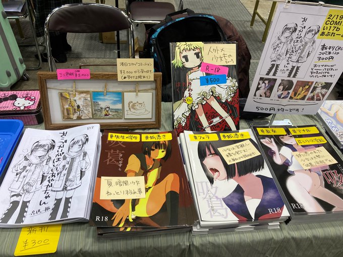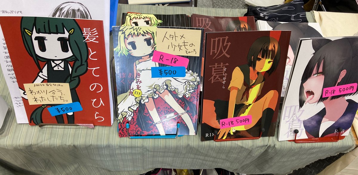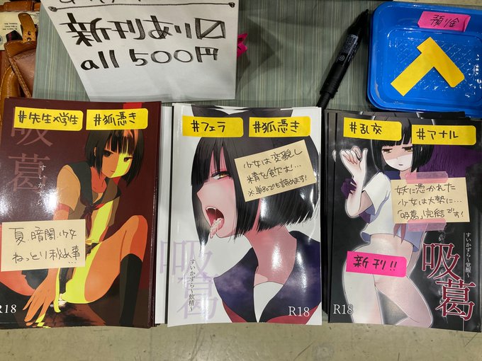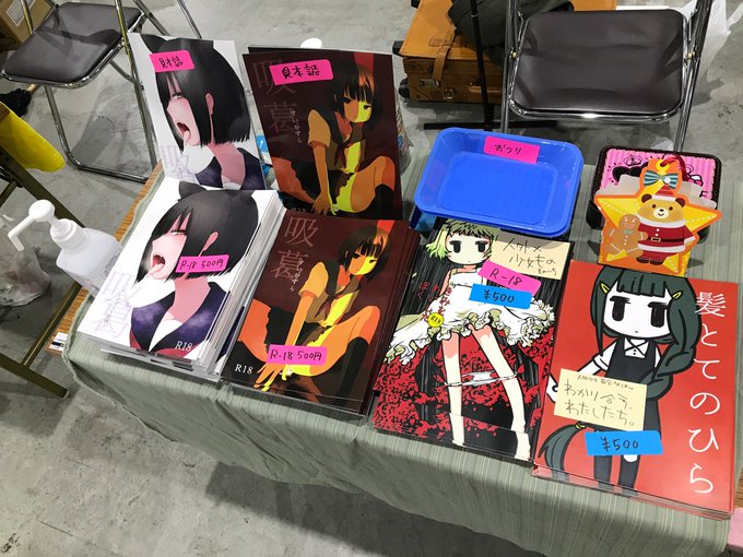あぷれーと、設営完了しました! 吸葛シリーズ、今回は本の上にわかりやすく性癖タグをつけてみました😌✨ 初手でサークル来てくださった方々本当にありがとうございます。ものすごく励みになります。 #COMITIA142