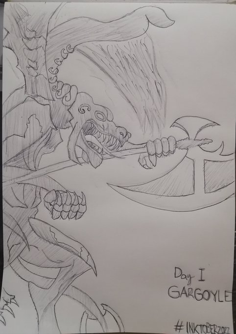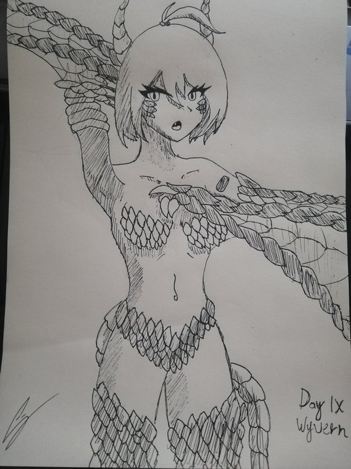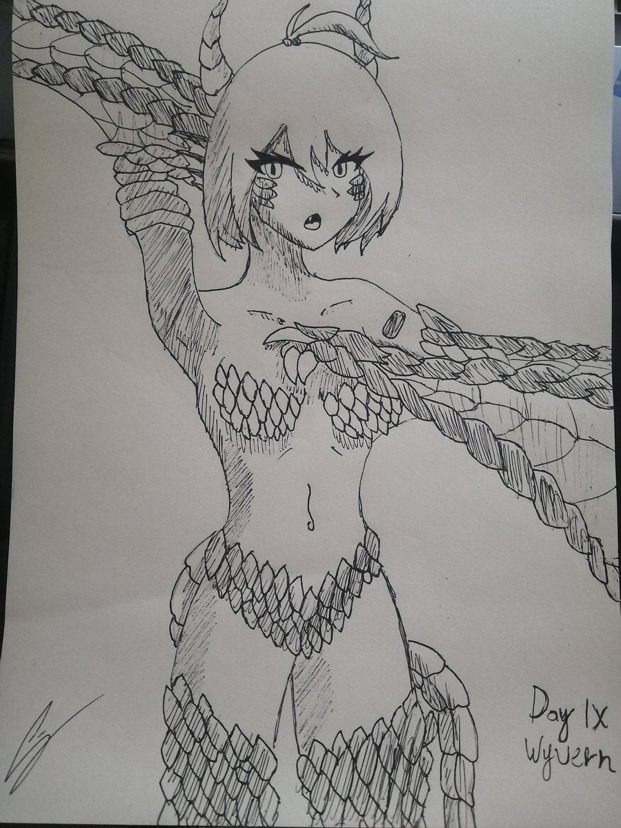Día 9: Wyvern Una wyvern haciendo sus estiramientos matutinos antes de emprender al vuelo. #Inktober2021