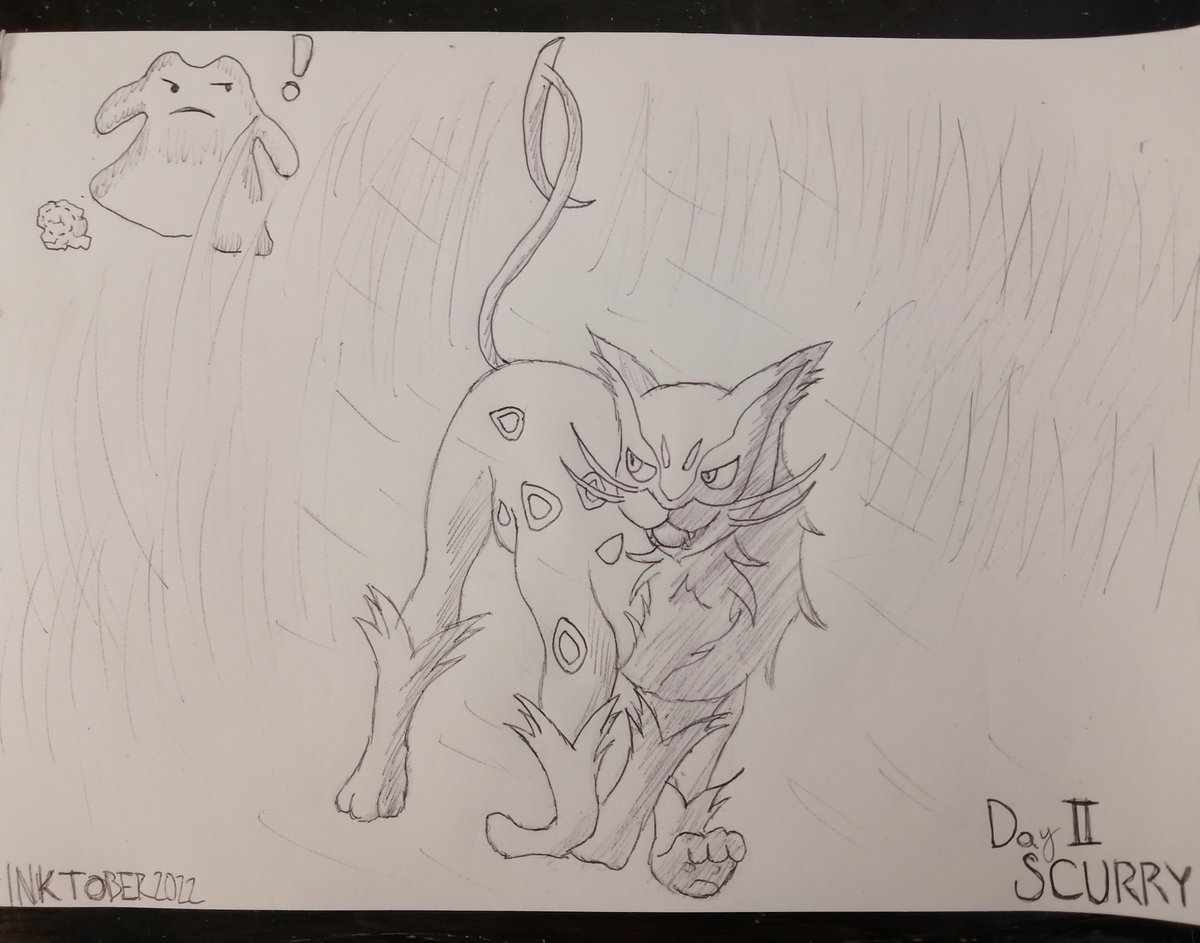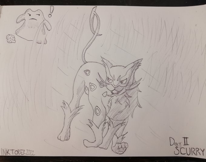 Dia 2: Scurry El pokémon Liepard huyendo con la baya de un Ditto, los Liepard son conocidos por ser escurridizos. #inktober2022 #inktober