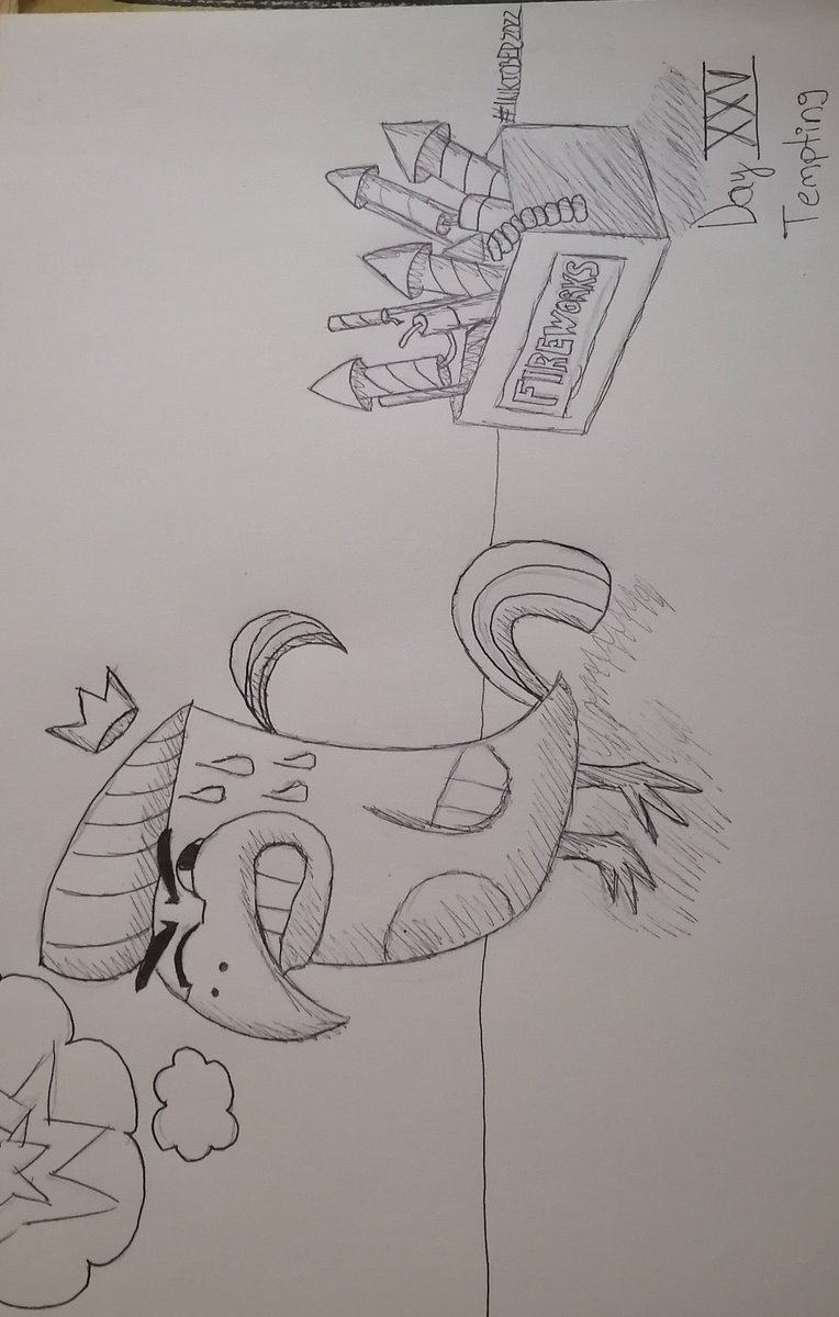 Dia 25: Tempting Cosmo camuflado como un loro evitando que su impulso de idiotez le de la tentación de acercarse a los cuetes. #inktober2022 #Inktober