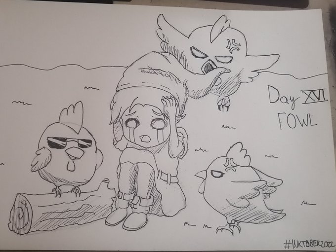 Dia 16: Fowl Young Link siendo confrontado por los cuccos debido a sus constantes ataques hacia su especie. #inktober2022 #inktober