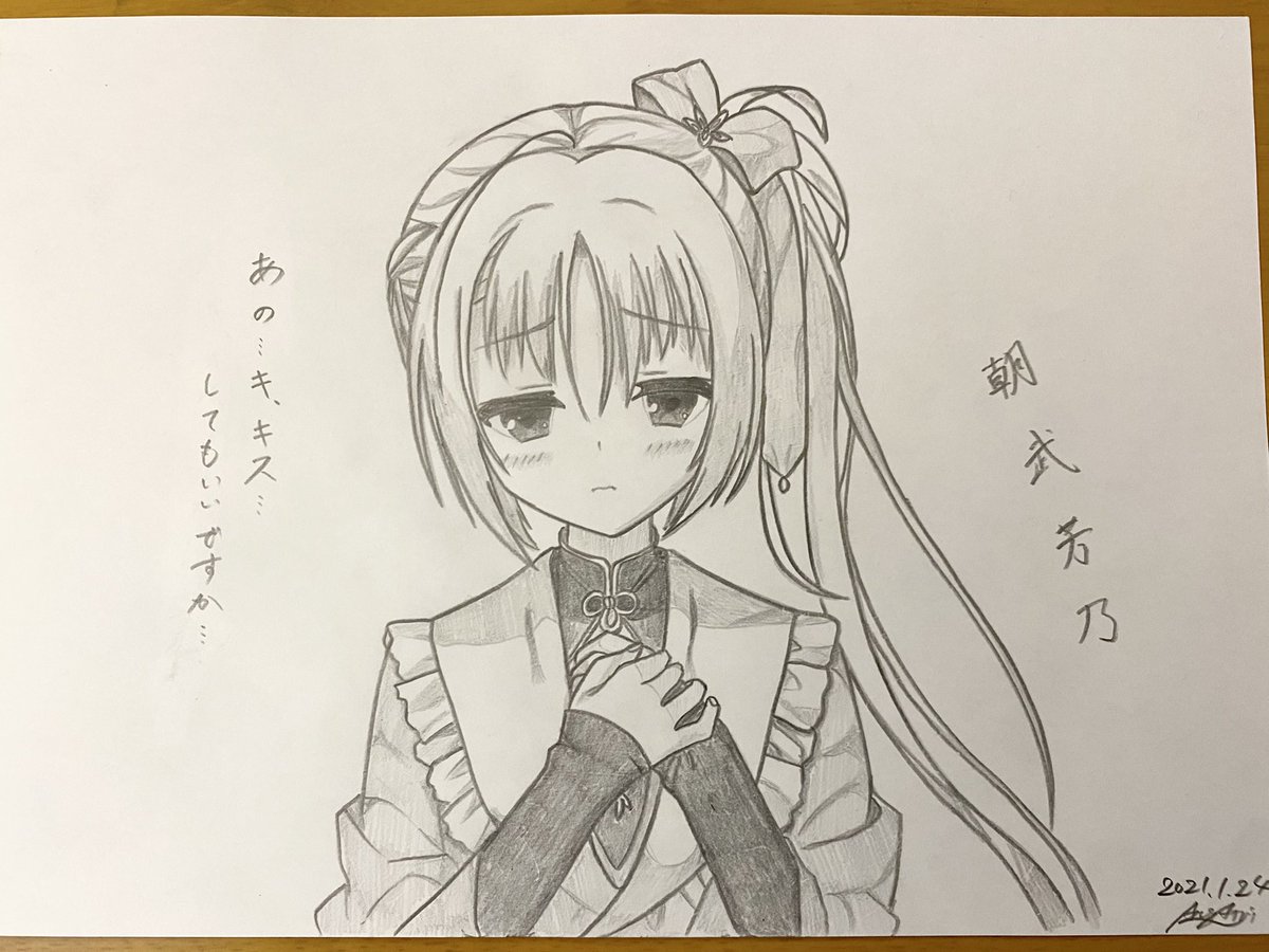 34 104 #ゆずソフト #天使騒々 ㊗️『天使☆騒々』マスターアップ!! 記念として鉛筆画かぐ耶さん初描きしました おめでとうございます!!!✨✨ 23/04/11 23:04