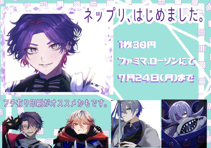 ネプリはじめました。 リクエストもらったものを登録しました! ここに乗り切ってないのも登録してます! 7月24日までファミマかローソンで印刷できます!🙌🙌🙌🙌🙌🙌 フチ有りがいい感じになるかも! ぜひー!