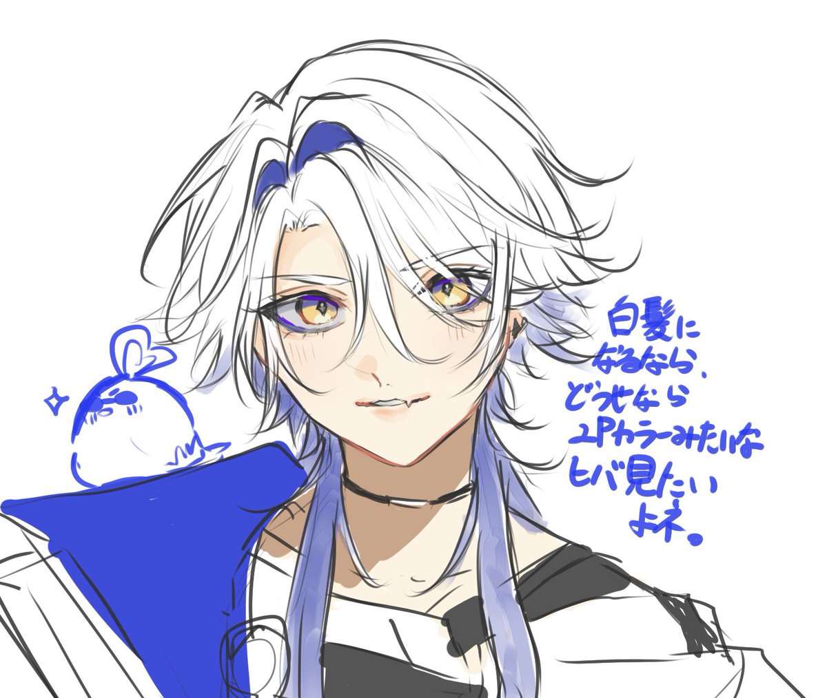 白髪長髪に触発されて描いた落書き