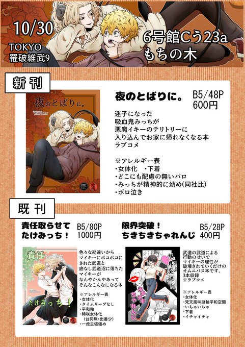 1/8 COMIC CITY大阪123 TOKYO罹破維武12 お品書きです 当日はよろしくお願いします٩( ''ω'' )و 無配やら持っていけたらいいなぁ・・・ 新刊サンプル→twitter.com/B23udbZlpg93Wv…