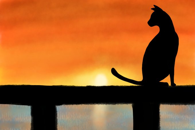 ネコ #水彩 #イラスト初心者 #ネコ #水彩イラスト #夕焼け