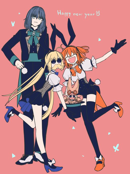 🐰描き納め〜㊗️🍊🐰🌟🎍🐰🎉 オベロン、ぐだ子、キャス🐰 #FGO