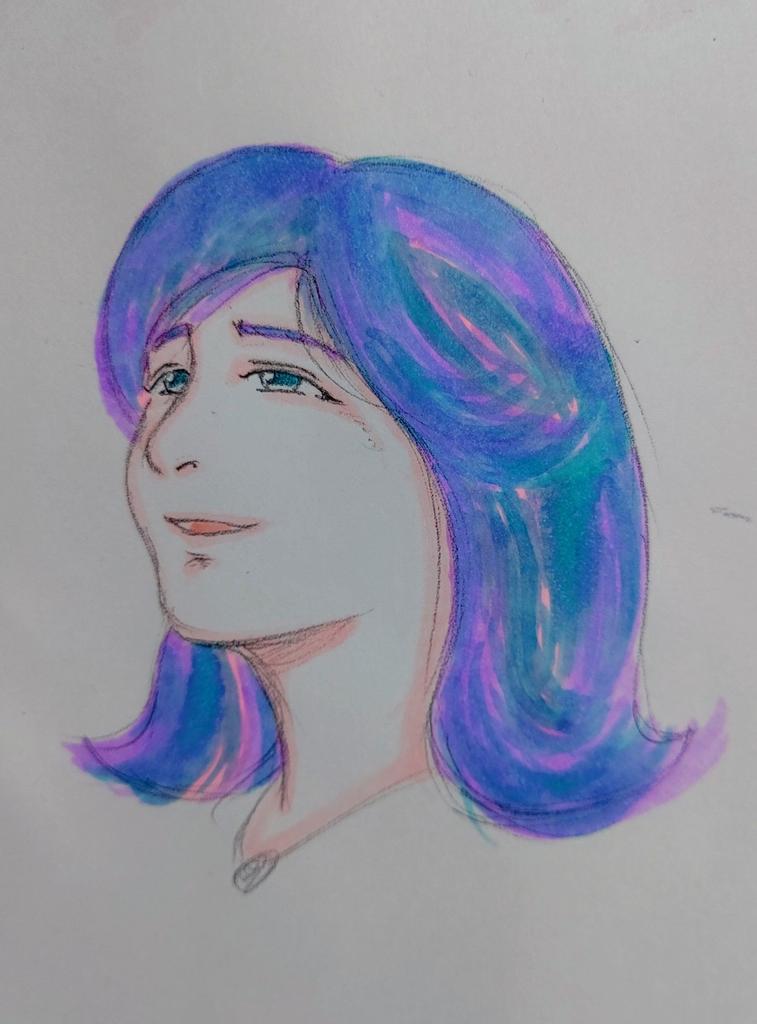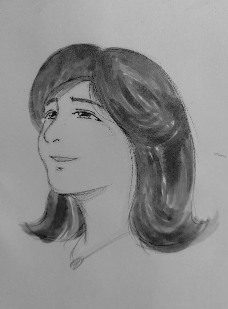 少し角度を変えて想像しながら描く、別の人にならないように👩🎶 #イラスト