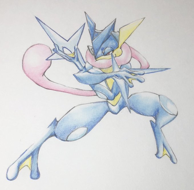 「水・悪タイプ」 #ポケモンイラスト #ゲッコウガ #色鉛筆
