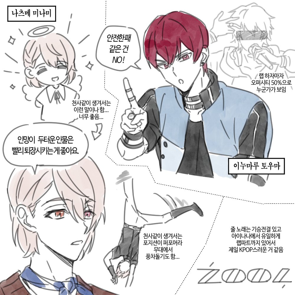 아이나나 다 본 기념 줄(zool) 감상... (스포ㅇ) 어쩌다보니 네명 다 그리게 돼서 모아서 재업...