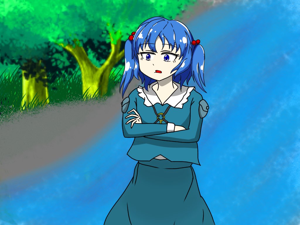 #深夜の真剣お絵描き60分一本勝負 #河城にとり #東方 にとり『えっ?河童の河流れ? そんなことある訳ないじゃん、 笑わせないでよね盟友くん』