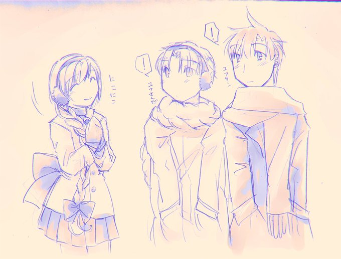 ていう。 ユフ誕だしの。 #UTAU落書き 雪歌ユフ、穂歌ソラ、轟栄一