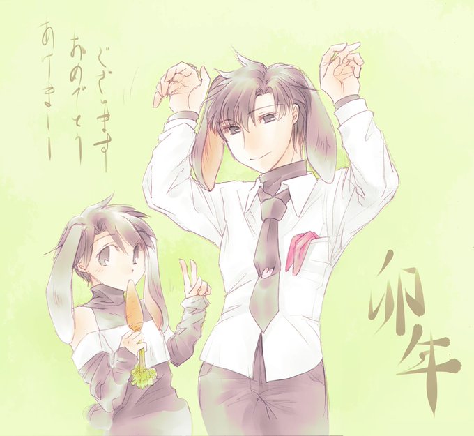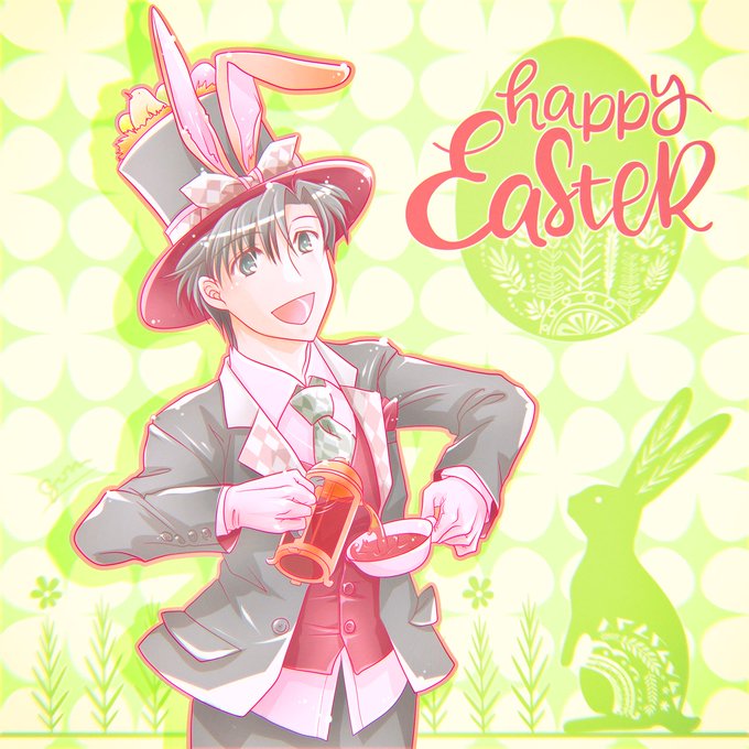 イースターうさぎのおにいさん描いた。よ。 🥚🐇🥚🐇🥚🐇 背景は素材。 #UTAU落書き #轟栄一