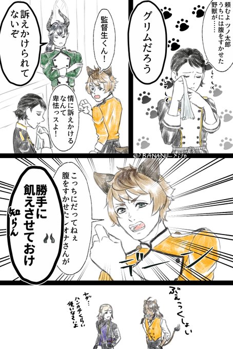 10 107 こいつかわいいな。 (🐉のゲストルームでの若干のセリフバレがあります) (監督生はセリフのみ) (寮章を描き忘れたことに気づいたのは全部が終わったあとだった) #twstプラス #twst夢 22/06/05 23:24