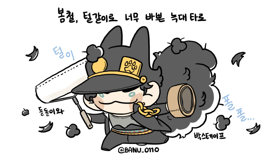 봄철 털갈이가 시작되면 스타크루 몸에 붙은 자기 털들 떼어주기 바쁜 늑대타로...ㅎ