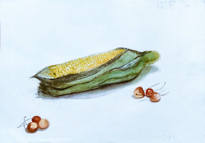 《反省点》 実際はもっと薄い… とうもろこしの粒をもう少し工夫しないといけなかった。 #透明水彩 #芸術同盟