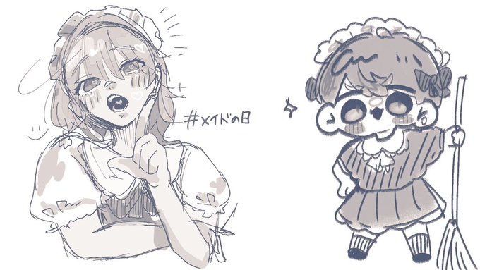 3 8 #メイドの日 #めいちゃん美術館 雑ですみません🙇 メイドちゃんとメイドめいちゃん🧡 23/05/09 21:42