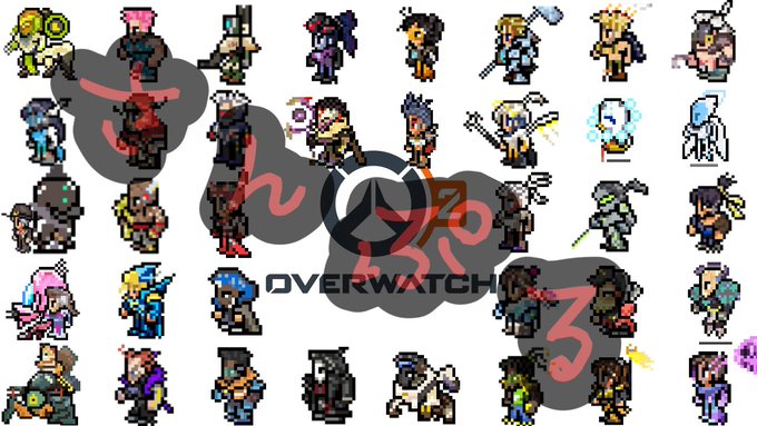 OW2集合ドット絵も新キャラ出るたびに追加してきたけど、増えたねぇ。 #OW2 #ドット絵