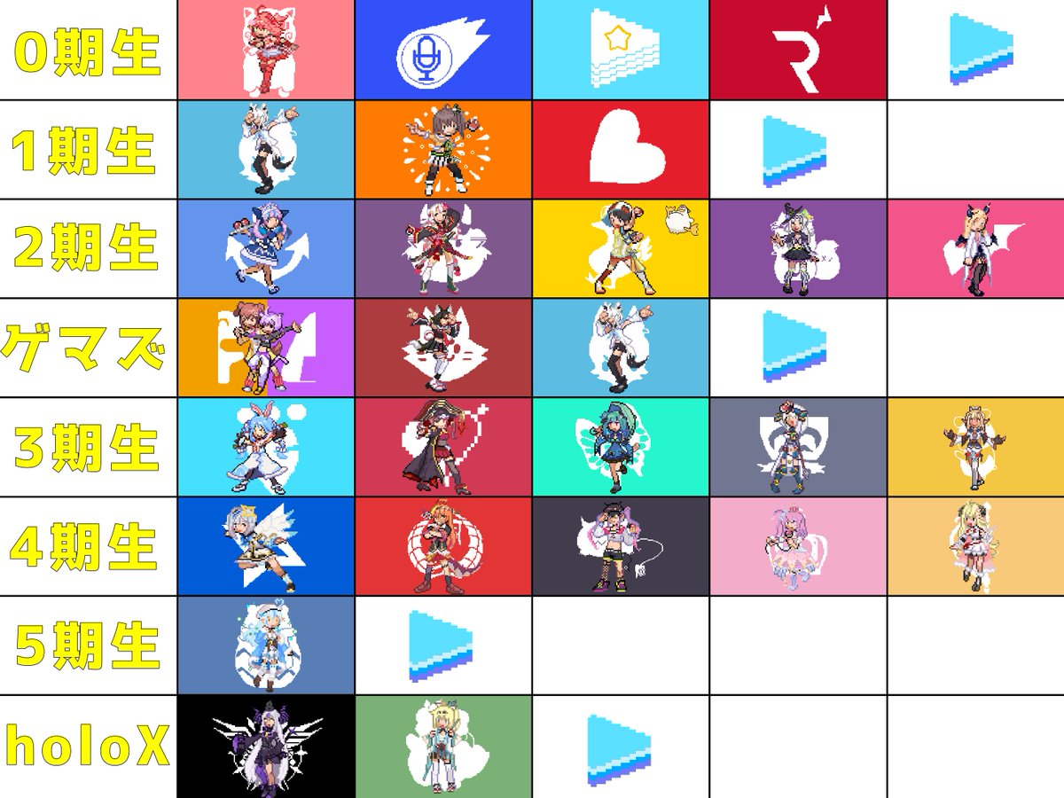 進まぬホロライブドット絵達 久々に見直したらここまでしか… 完成はいつになるやら。 #ホロライブ #ドット絵