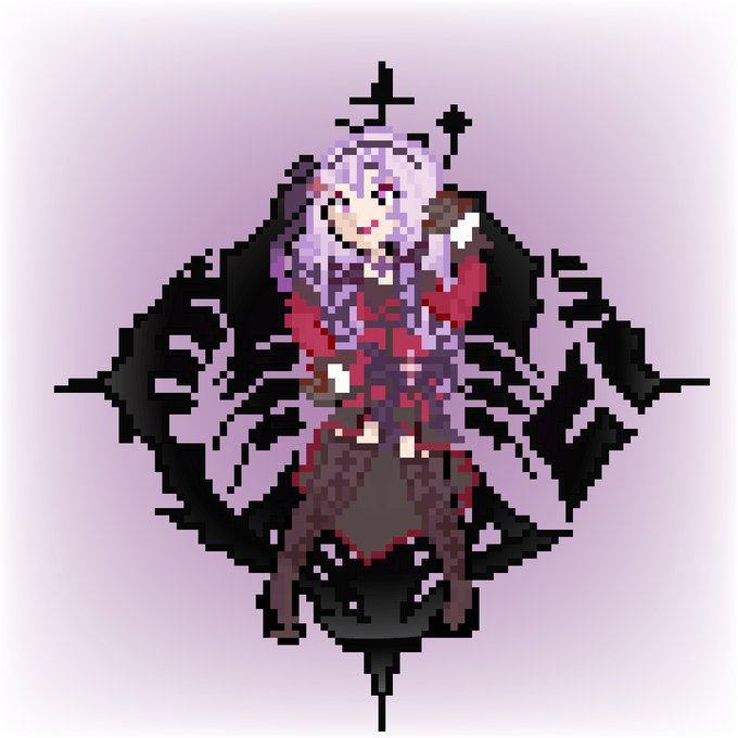 7 38 #TOWART ホロライブドット絵16作目 『常闇トワ』 溢れる強者感出たはず。 胴長に見えてしまうのがなんかこう…もう少しこう…… 胴回りをいじり回してわからなくなり、最初に戻るを繰り返し、最終的に最初に戻しました。 バランスって難しい。。 21/11/21 04:39