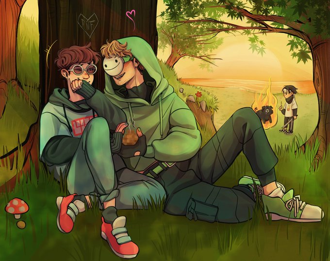 They are just .... flirting(?) Tried to do a background this time, wasn't as awful as I thought it would be #DNF #dnffanart #DREAM #dreamwastakenfanart #georgenotfoundfanart #GEORGE #gnffanart