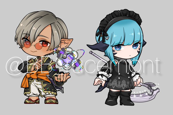 ミニキャラ第2弾 ff14を始めるきっかけをくれたお2人を描かせていただきました! アクスタで帰ってくるの楽しみ✨