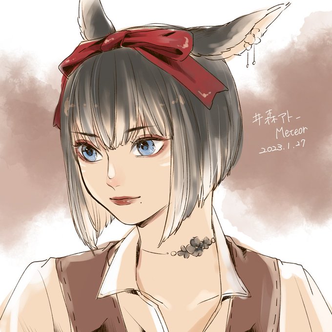 2 19 フレンドさんとお邪魔してます🌳 素敵なミコッテさんがいらっしゃったので描かせていただきました🐱🎀 #森アト_Meteor #森アト絵 23/01/27 23:53