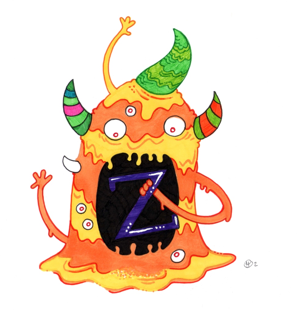 🎃Inktober Day 26🖋 Finally, the monsters ate the letter Z! Would you share with us what you think Z tastes like? Maybe Zebras? Zombies? Zambonis? Check out our Instagram Story and share your ideas! #inktober #inktober2021 #childrensbook #alphabet #alphabetbook #inkdrawing