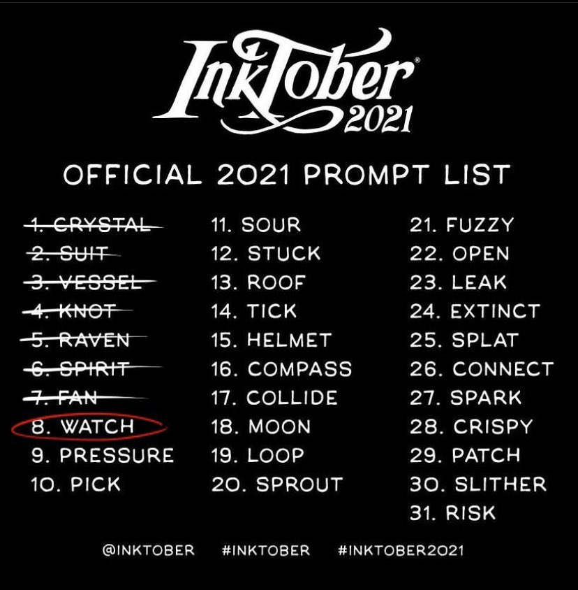 A tensão durante a prova Eu falei que não ia pintar e pintei eu sou uma comédia Dia 8: Watch (vigilância/relógio) #inktober2021 #inktober #Inktoberday8