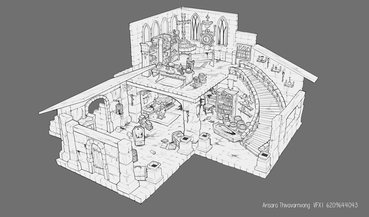 ⛪Abandoned church⛪ งานวิชาperspectiveของปีก่อนค่ะ ได้ออกแบบทั้งexterior/interiorเลย🌟 #มาอวดโฮมุ้ #ArtistOnTwitter