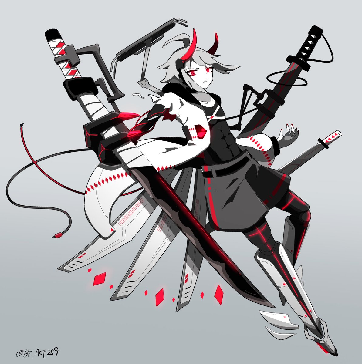 前々から描こうと思ってた竹狸さん(@HGVXX7 )の角っ娘ちゃん描かせていただきました 四角瞳孔よき