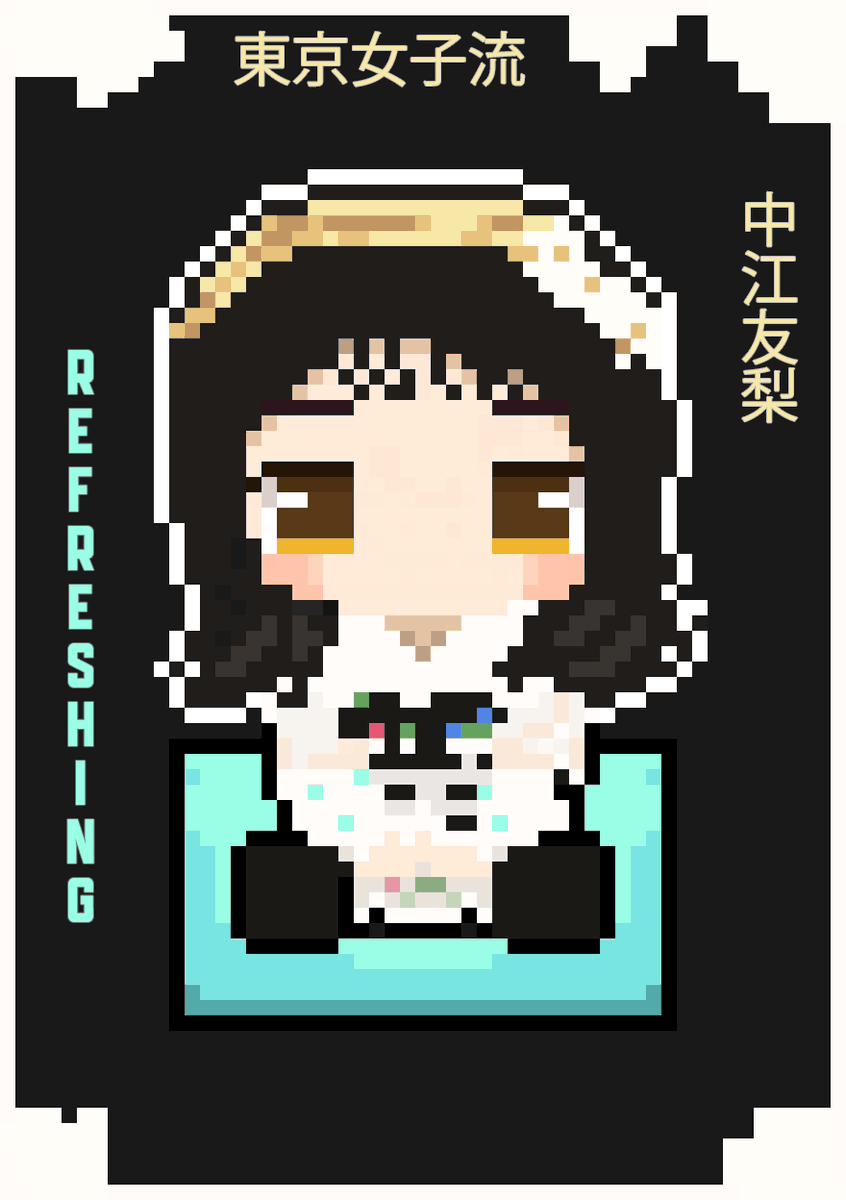 6 10 時々インスタでちょっと決まるのは困ったので、ここで絵フールVersionのために。 ><楽しかった。 #中江友梨 #tokyogirlsstyle #ドット絵 #pixelart 23/05/11 13:34