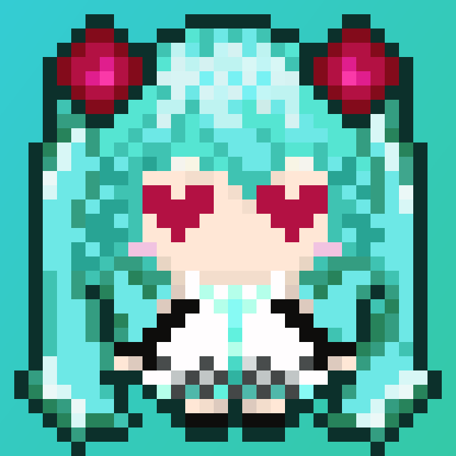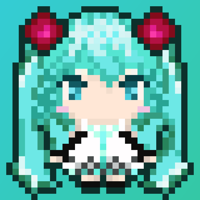 ハツネミクの世界、世の中楽しいですね😊、お楽しんでね~ #ドット絵 #HatsuneMiku #練習 #したい