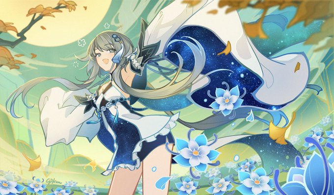 #原神 #guizhong #帰終 #genshinimpact 期盼已久的归终,这次造型和性格完全是踩着我的XP起舞!可惜了没能看到PV里的琉璃百合花海,这里仿一个pv画风让她在她最爱的花海里吧! Pixiv:pixiv.net/artworks/10482…