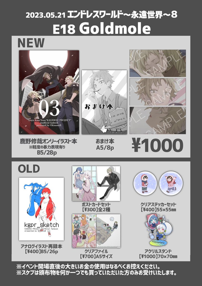4月10日東京流通センター(TRC)【エンドレスワールド~永遠世界~5】にサークル参加します! youyou.co.jp/only/end/5/ 申し込みました〜 別の本を出したかったのですが思ったより時間がなかったので、再演で出そうと思ってたらくがき本をこっちで出そうと思います。その分内容詰めれたらと思います🙇♂️