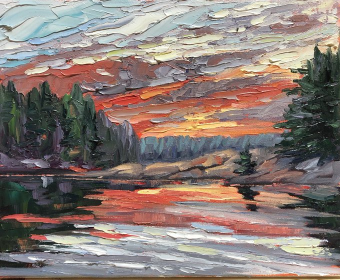 I was tidying up the studio yesterday when I couldn’t resist tweaking this small painting. October Sunrise 12x12” oil. #parrysound #sunrise