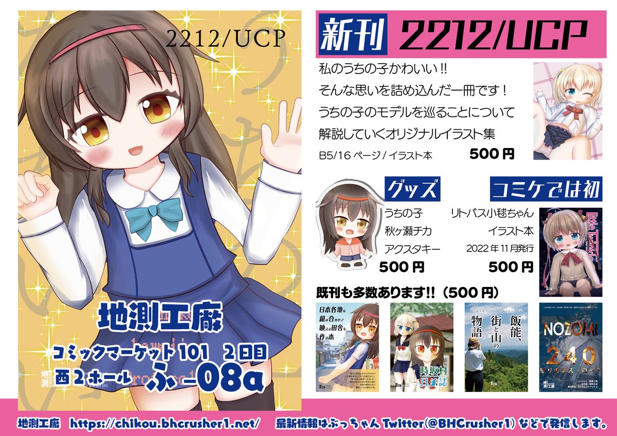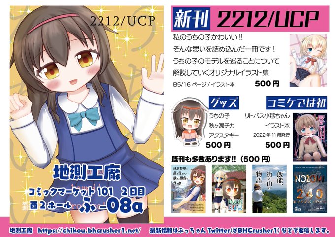 冬コミ #C101 お品書き うちの子イラスト&評論な冬コミ新刊のほか、11月のKey Islandで頒布したリトバス小毬ちゃんイラスト本もあります。 2日目 西ふ-08a 「地測工廠」でお待ちしています! #C101お品書き メロンブックス予約: melonbooks.co.jp/detail/detail.… コミケWebカタログ: webcatalog.circle.ms/Perma/Circle/1…