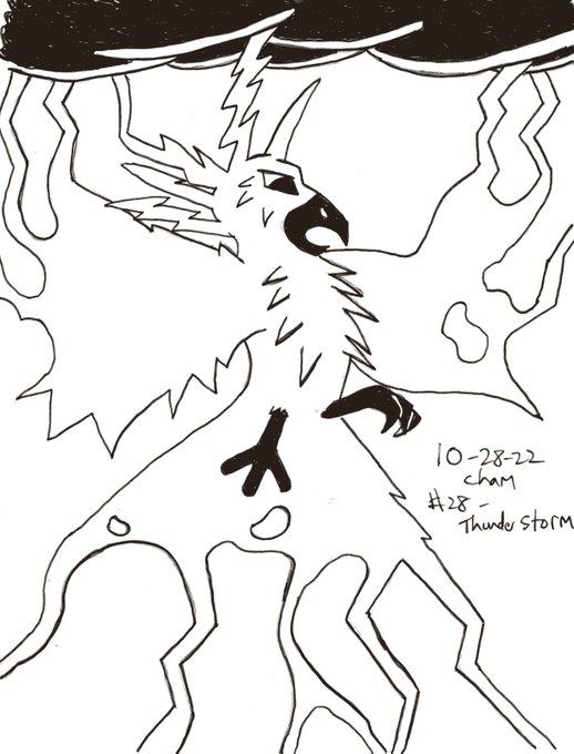 Inktober Day 28: Thunderstorm Wanted to try something a little bit different for me and design a lightning phoenix of sorts. #Inktober2022