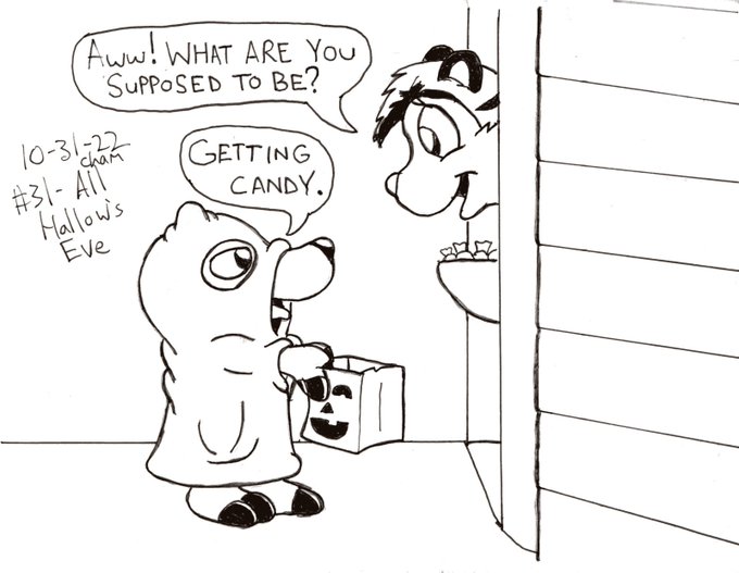 Inktober Day 31: All Hallows' Eve It's hard to not have fun with Trick or Treat joke concepts ;) Also, last one! Woo! #Inktober2022 #Halloween2022