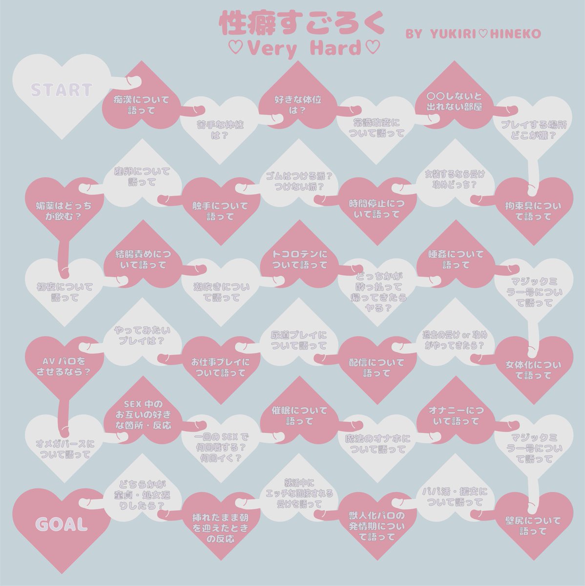 『性癖すごろく♡VeryHard♡』 男性向け色強めの性癖すごろくです!どうぞ、ご自由に遊んでください~!😊 こちら、性癖穴兄弟、由霧さんとの共同制作になります♡ pixivにも上げてます。高画質が欲しければこちらへ⇒ pixiv.net/artworks/95214… #性癖すごろく